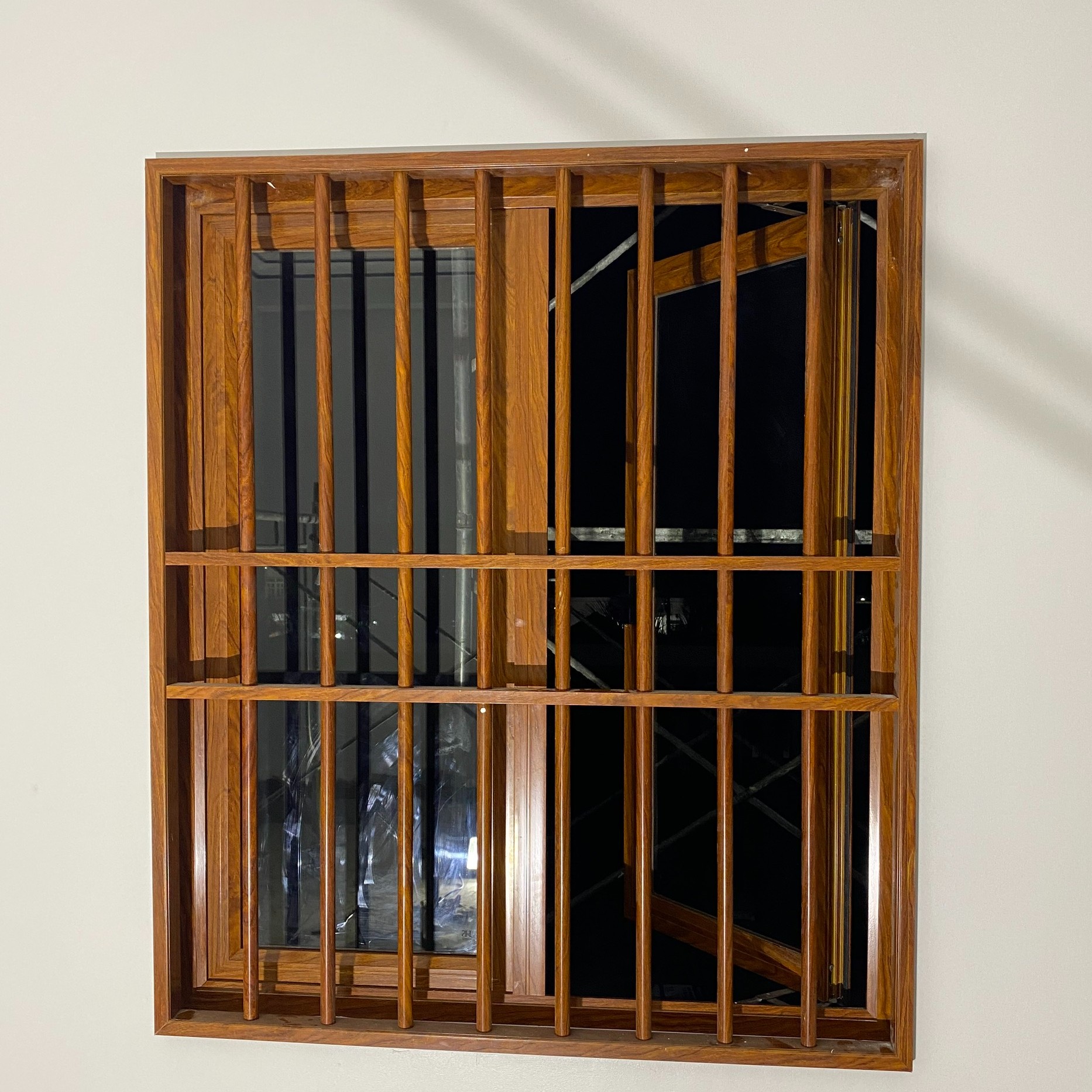 Chấn song dọc vân gỗ – Bảo vệ cửa sổ an toàn, bền đẹp, thoáng sáng