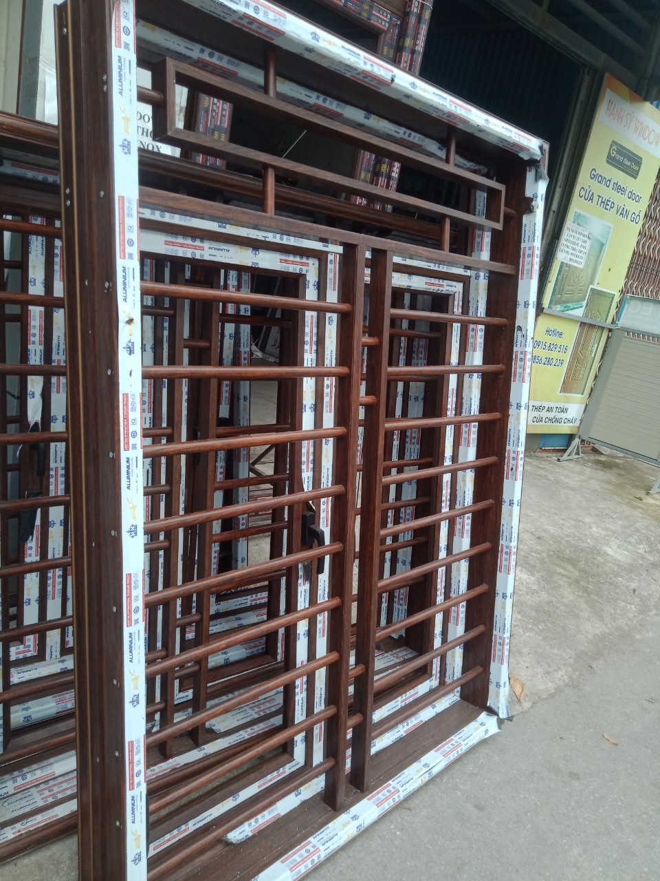 Đây là loại “chấn song cửa sổ nhôm song ngang” vân gỗ